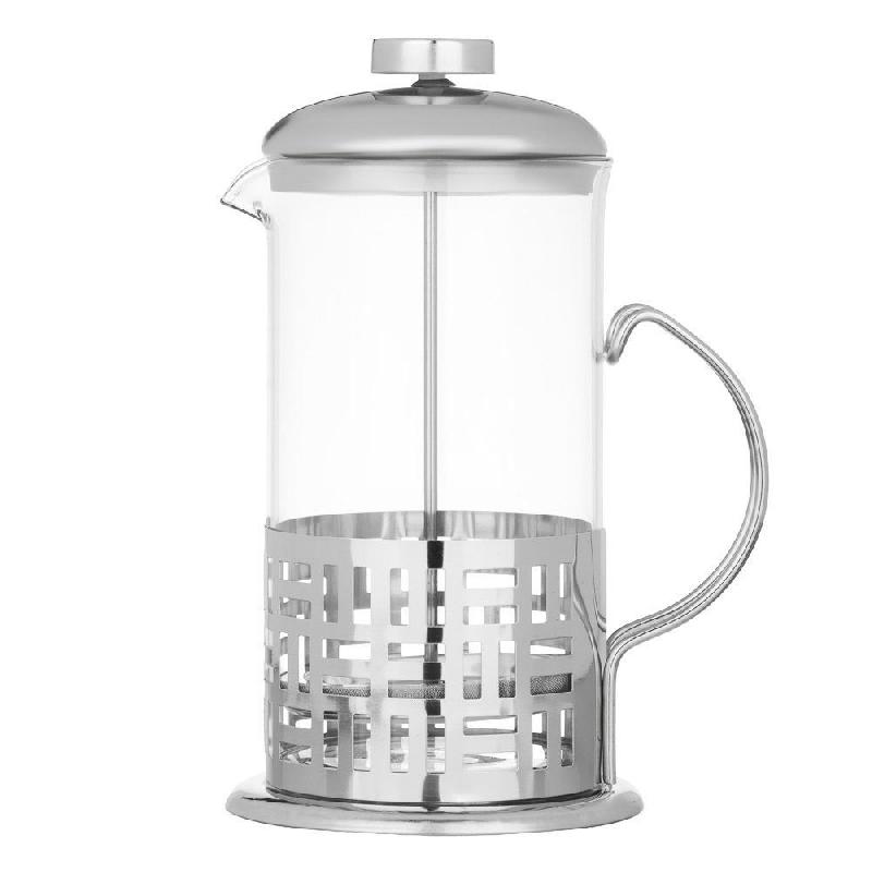 Френч-пресс VETTA, объем 600 мл с колбой из жаропрочного стекла – это аксессуар для ручного приготовления кофе и чая методом настаивания и фильтрации. Корпус-подставка из нержавеющей стали защищает от взаимодействия с высокими температурами и выполняет декоративную функцию, а прозрачная колба позволяет отслеживать насыщенность настоя и долго сохраняет температуру напитка. Сетчатый фильтр эффективно удаляет мелкие частички кофе или заварки, гарантируя получение прозрачного и чистого напитка. Френч-пресс легко разбирается и моется. Универсальный дизайн в серебряном цвете впишется в интерьер кухни любого стиля.