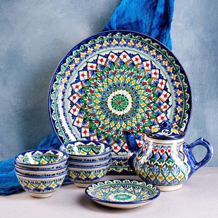 Набор чайный 9 предметов Риштанская Керамика (Чайник 0,8л,пиалы- 0,2)