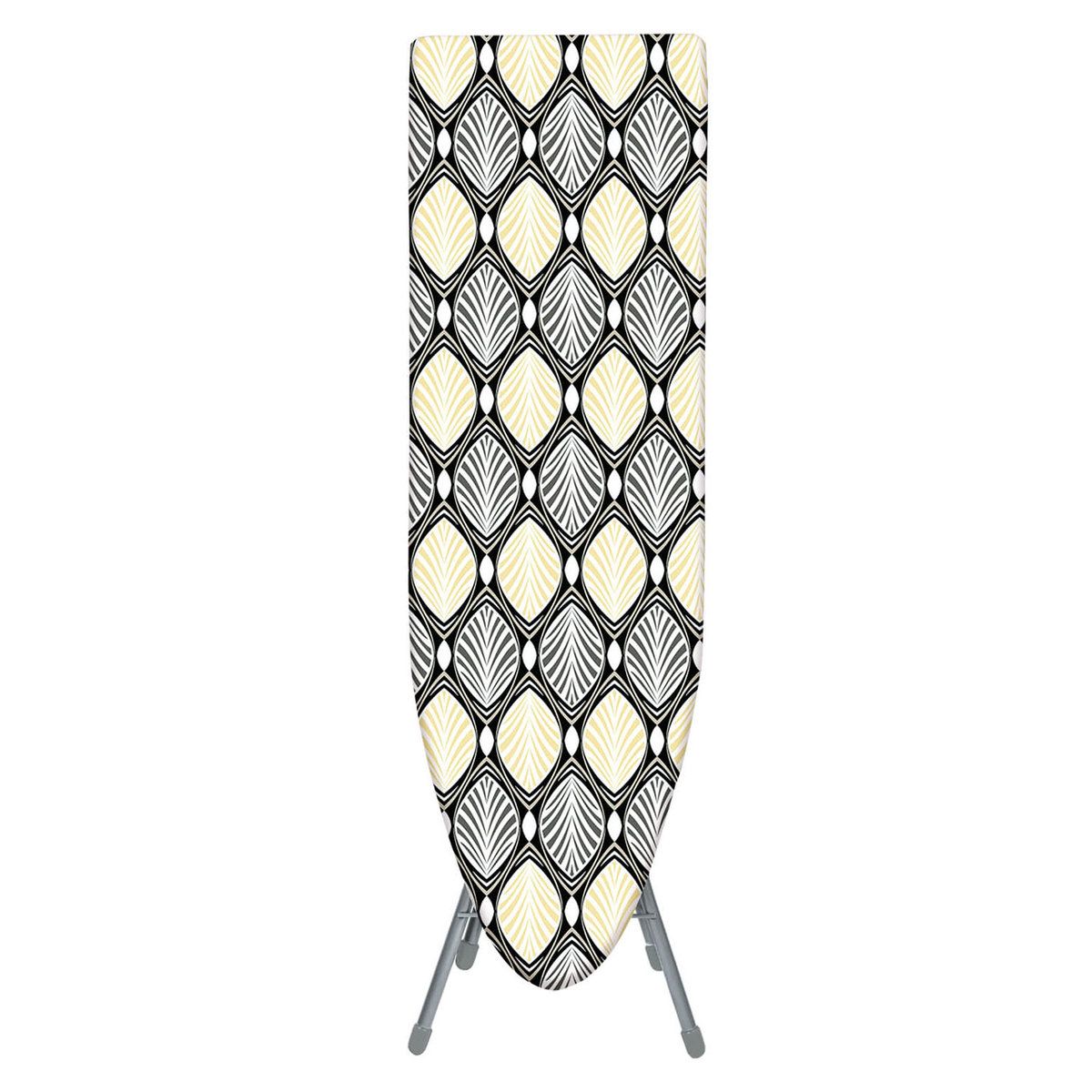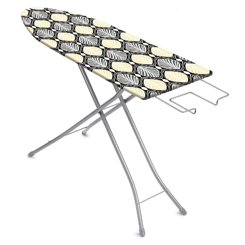 Гладильная доска с рабочей поверхностью из ДСП, чехлом из хлопка и выдвижным подутюжником.