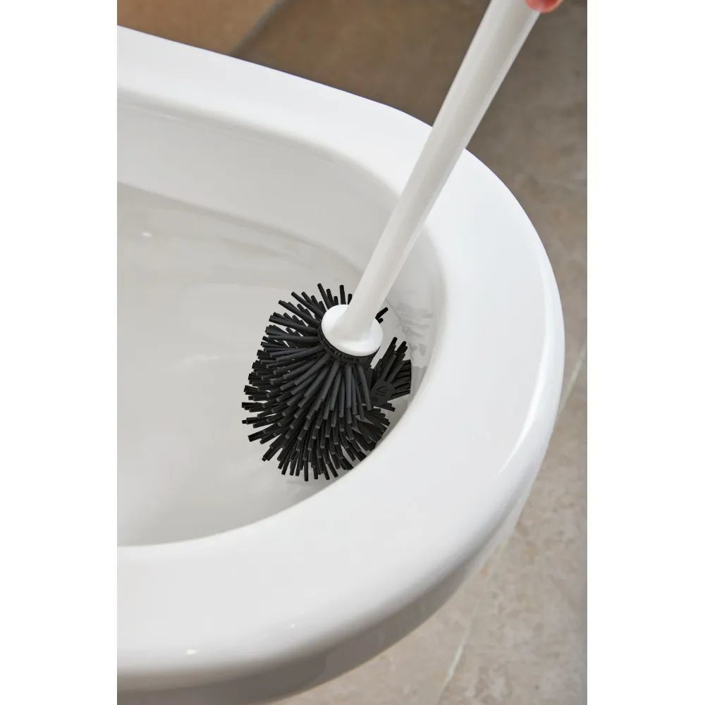 Мягкие щетинки ёршика из эластомера не царапают поверхность, но при этом легко справляются с любыми загрязнениями. Ёршик имеет удобный наконечник и идеально чистит в труднодоступных местах, в том числе, под ободком и крышкой унитаза. Ёршик не впитывает воду, быстро сохнет, в подставке для ёршика не скапливается вода.