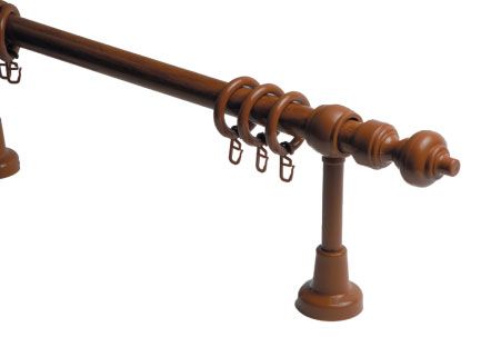 Карниз круглый (металлический) с пластиковой фурнитурой состоит из металлической штанги, которая декорирована ПВХ пленкой. В комплект входит пластиковая фурнитура.