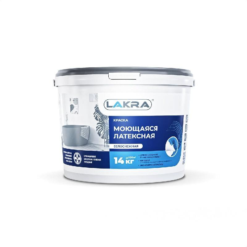 Краска для стен и потолков моющаяся латексная Лакра белоснежная 14кг