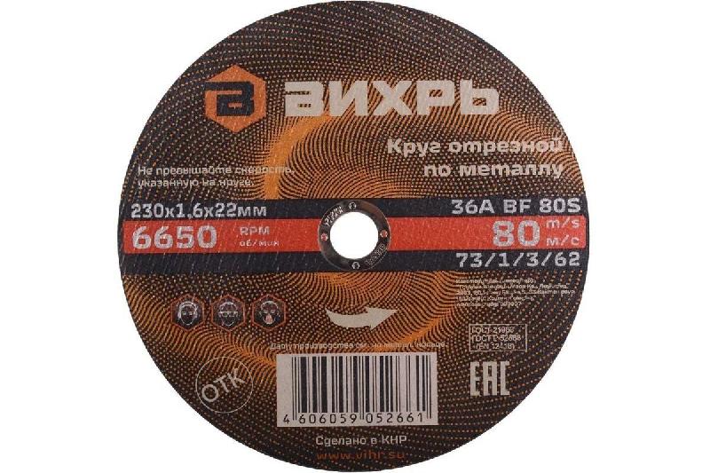 Круг отрезной по металлу 230х1,6х22 мм Вихрь