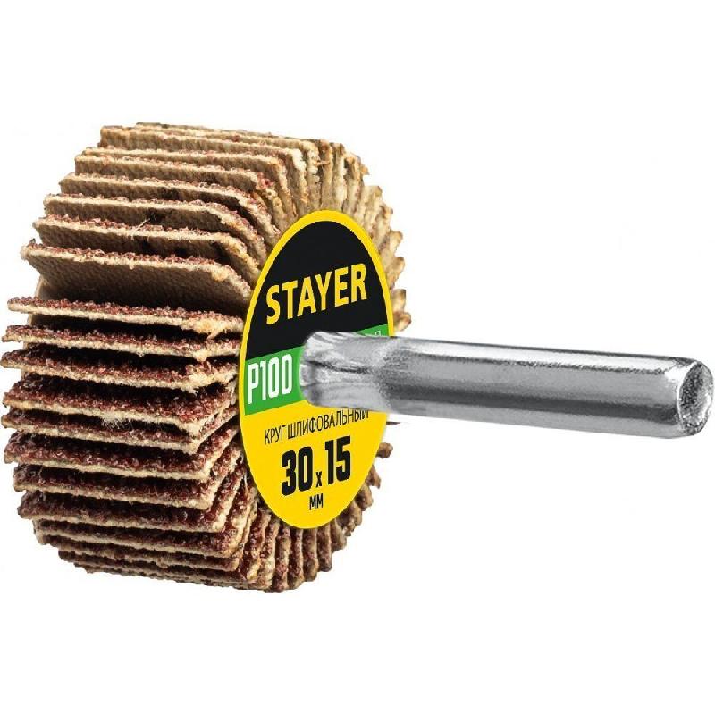 Круг шлифовальный STAYER лепестковый, на шпильке, P100, 30х15 мм