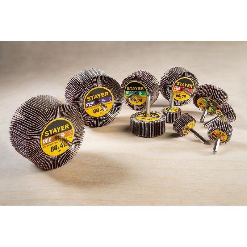 Круг шлифовальный STAYER лепестковый, на шпильке, P180, 30х15 мм