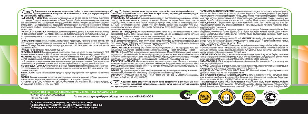 Высококачественный лак на основе водной акриловой дисперсии.