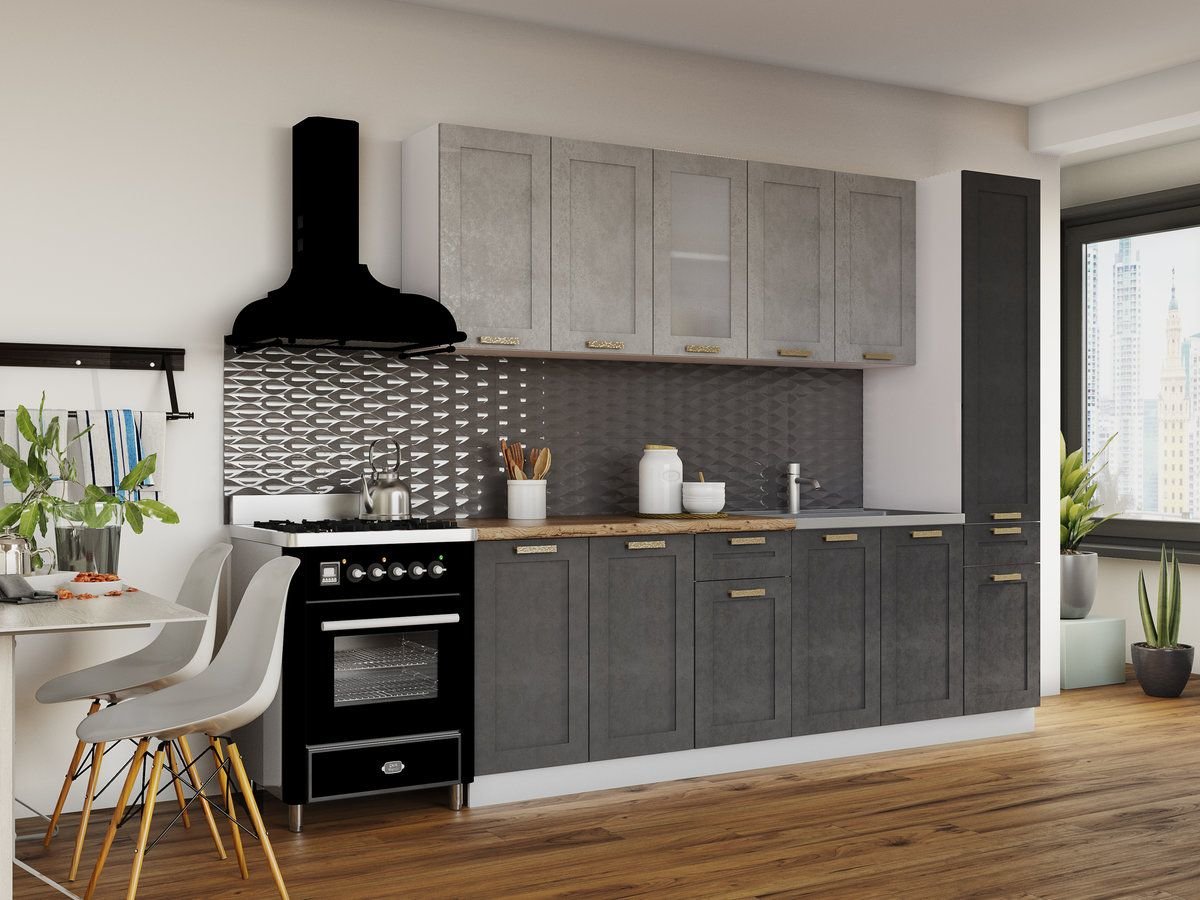 Представляет собой линейную модульную кухню в матовых тонах. Кухня «Лофт» - это современная кухня, которую можно интерпретировать в соответствии с различными стилями, благодаря широкому ассортименту вариантов отделки.