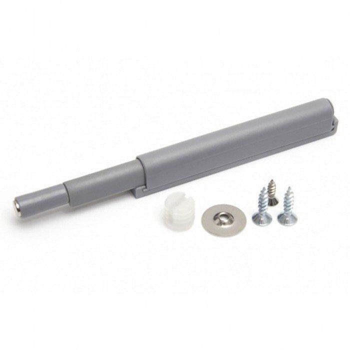 Комплект отталкивателей - Push to open с магнитным окончанием используется для выдвижения мебельного ящика или открывания дверцы шкафа без мебельной ручки. Открывание фасада осуществляется за счет нажатия на дверцу шкафа или лицевую сторону ящика, срабатывает система Push to open. Благодаря магнитному наконечнику происходит дополнительная фиксация дверцы/ящика в закрытом состоянии. Устанавливается посредством накладного монтажа.