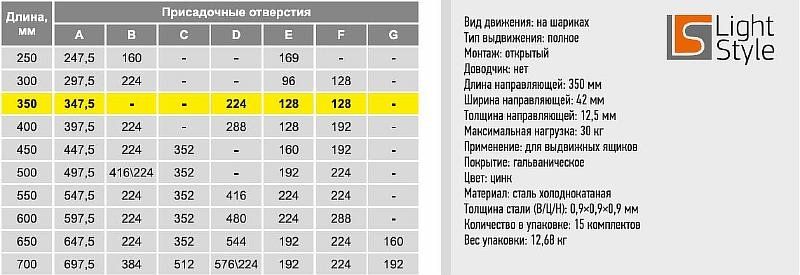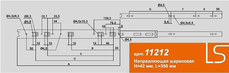 Шариковые направляющие 11212 350мм, H=42мм хром LS
