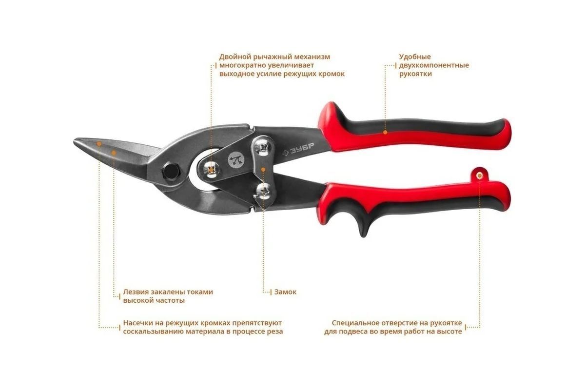Ножницы по металлу ЗУБР двухрычажные, правые, У8А, 250 мм