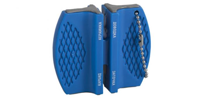 • Два вида затачивающих элементов: твердосплавные пластины "КАРБИД" для сильно затупленных ножей и керамические стержни для доводки и шлифовки
