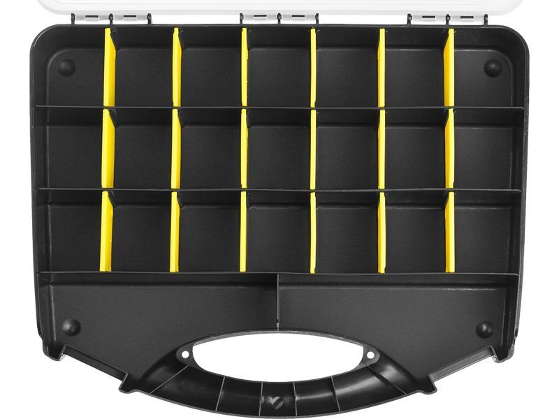 Органайзер служит для хранения мелких предметов, метизов и аксессуаров для инструмента. Широко используется как в бытовой, так и в рабочей сферах деятельности мастерами-любителями, а также монтажниками. Большое количество ячеек и возможность их регулирования по ширине позволяет организовать удобное хранение инструментов и принадлежностей.