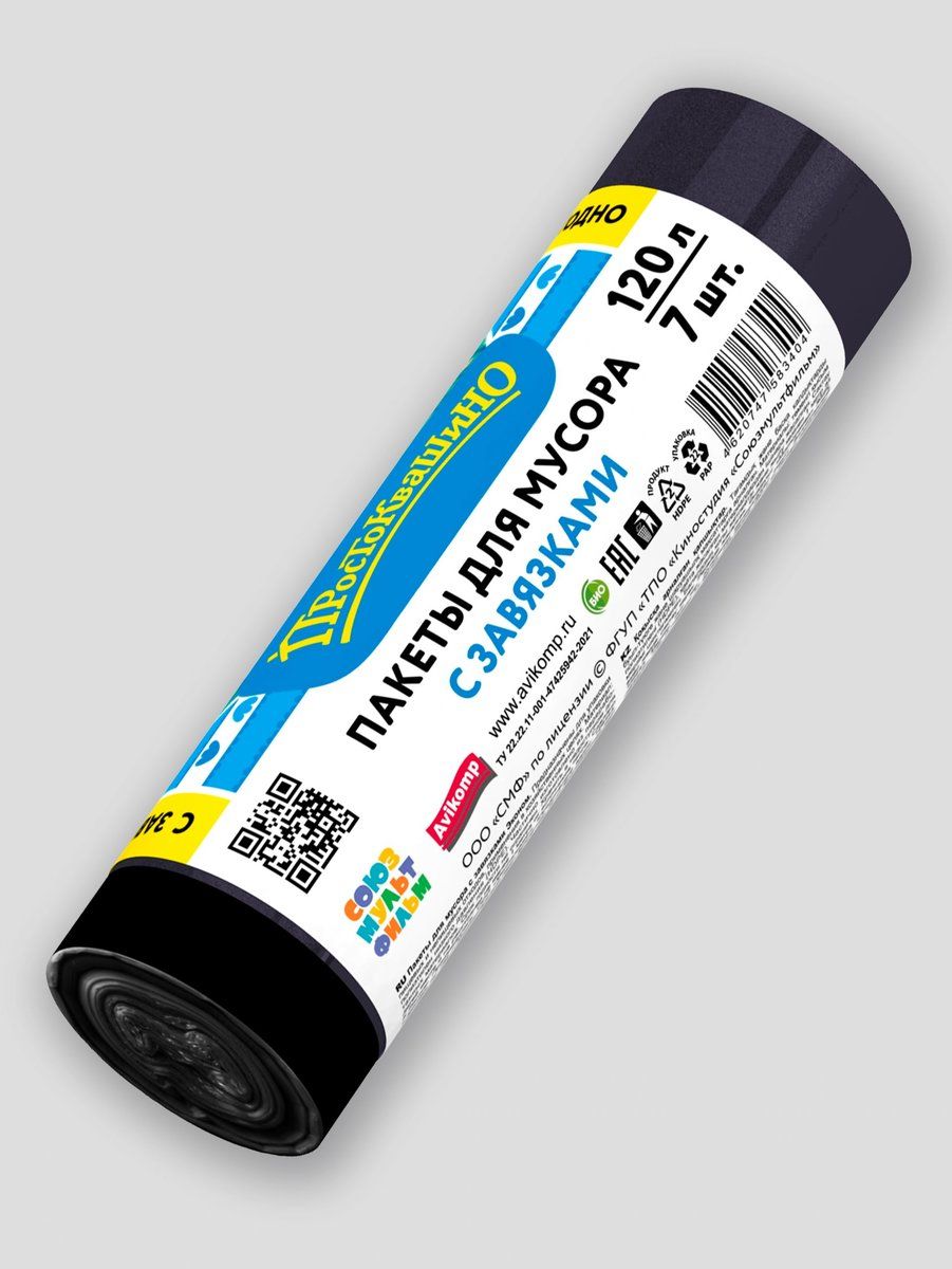 Мешки д/мусора Avikomp 120л 7шт Эконом С завязками ПНД Рулон Черные Простоквашино
