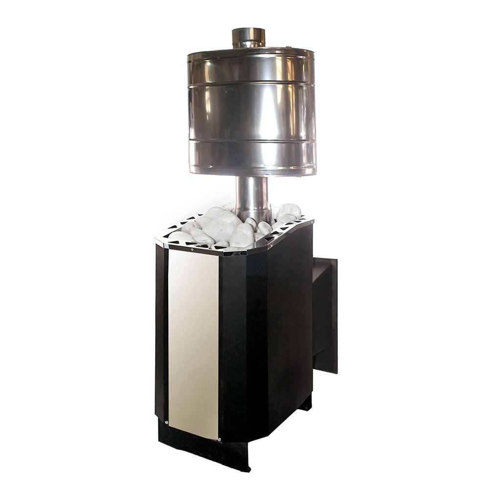 Каменка вмещает до 55 кг камней, которые при нагреве излучают мягкое тепло, а если полить их водой обеспечат мелкодисперсный пар.