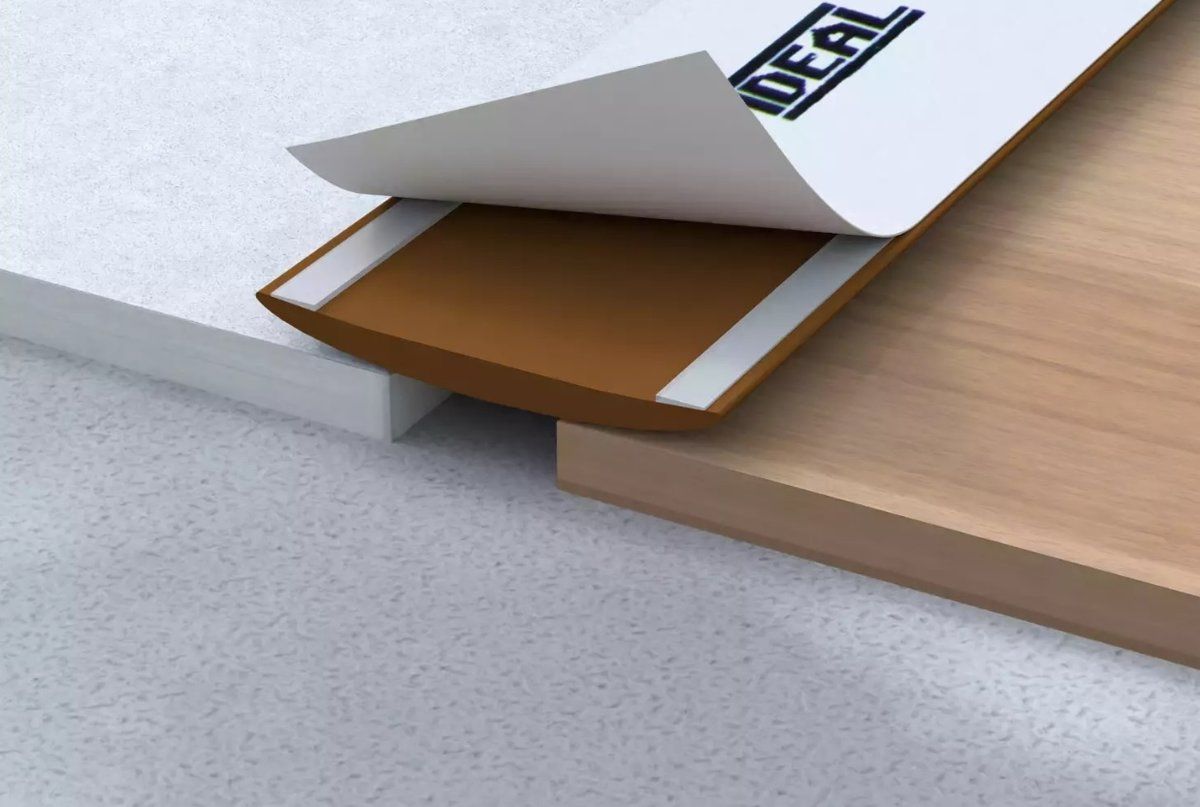 Отличается от других порогов самым простым способом монтажа. Достаточно отмерить необходимую длину порога, отрезать и приклеить с помощью уже имеющегося клеевого покрытия.