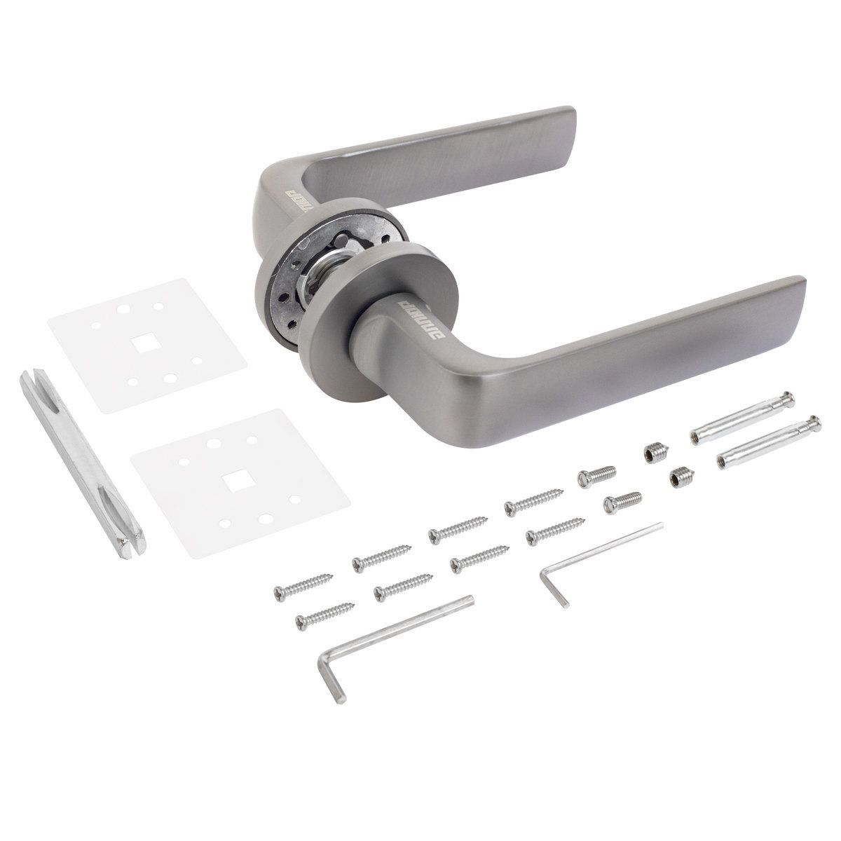 Комплект ручек, подпружиненный на круглой накладке для деревянных дверей с толщиной полотна 34-40 мм. Материал ручек — алюминиевый сплав, основание розетки — ЦАМ. Многослойное гальваническое покрытие. Комплектуются винтовыми стяжками, шурупами, квадратным стержнем в сечении 8х8 мм. Гарантийный срок эксплуатации — 3 года.