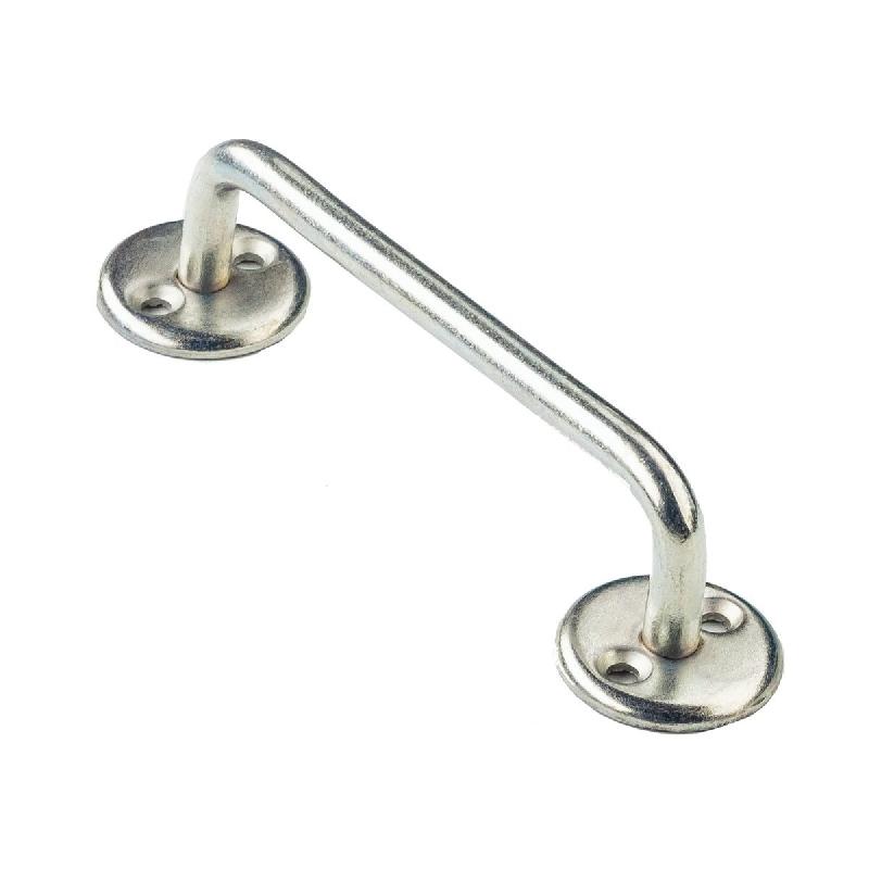 Ручка-скоба для деревянных окон и дверей. Материал - сталь, полимерное покрытие. Расстояние между креплениями - 90 мм, диаметр накладок - 34 мм. Длина ручки - 80 мм, высота - 30 мм. Крепеж в комплект не входит.