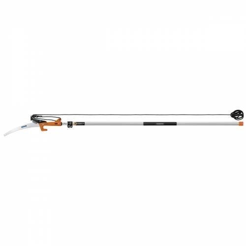 Высокопрочное гнущееся лезвие из углеродистой стали Режущая часть лезвия 13 дюймов / 330 мм Трёхсторонняя заточка резцов Профиль резцов, спроектированный для двусторонней резки, обеспечивает чистый срез без сломов, что способствует быстрому восстановлению веток Очень острые резцы обеспечивают аккуратный срез и не требуют периодической регулировки 3х метровая металлическая телескопическая ручка.