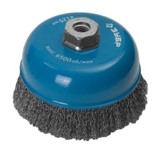 Щетка ЗУБР "ЭКСПЕРТ" чашечная для ушм, витая стальная проволока 0,3мм, 75мм/м14
