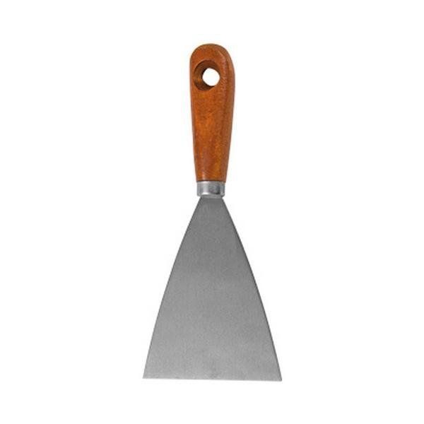 Применяется для нанесения на обрабатываемую поверхность и последующего выравнивания шпатлевки и других отделочных растворов. Профилированное полотно шпателя изготовлено из высокоуглеродистой закаленной стали. Деревянная рукоятка надежно скреплена с полотном и оснащена отверстием для подвески.