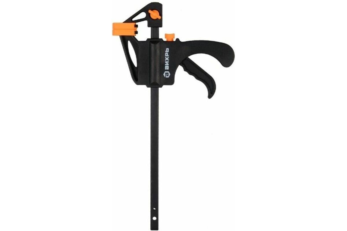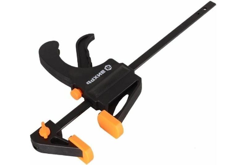 Струбцина быстрозажимная Вихрь 150х45 мм - инструмент пистолетной формы предусматривает наличие рычажного быстрозажимного механизма. Это делает эксплуатацию струбцины легче, позволяя работать с ней одной рукой. Конструкция инструмента позволяет использовать его также в режиме распора.