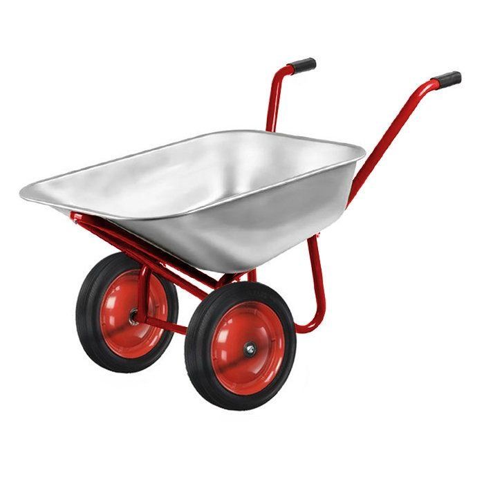 Строительная тачка на 2-х литых колесах, предназначена для перевозки сыпучих материалов, строительного мусора, удобна на строительной площадке или на дачном участке. Тачка проста в эксплуатации, легко собирается. Корыто сделано из стального листа, стойкого к ударам и деформации. Вместительная.