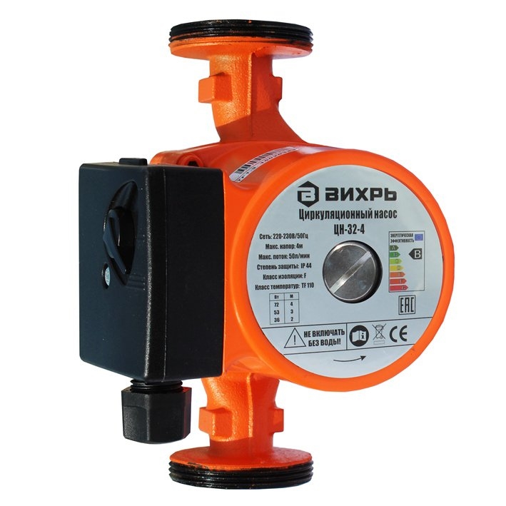 Циркуляционный насос Вихрь ЦН-32-4 ПРОФ используется для обеспечения циркуляции теплоносителя в системах отопления. Он оснащен тремя режимами мощности — 36 Вт, 53 Вт и 72 Вт. Эти режимы соответствуют различным уровням напора: 2 м, 3 м и 4 м соответственно, что позволяет выбирать оптимальный режим работы в зависимости от специфики системы.
