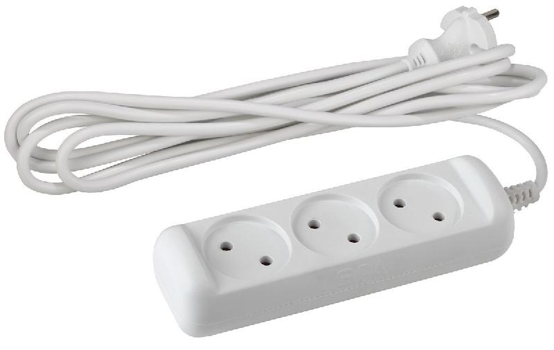 Удлинитель ЭРА U-3-5m 3-местный без з/к, 5м, ПВС 2х1мм2, 10А/2200Вт