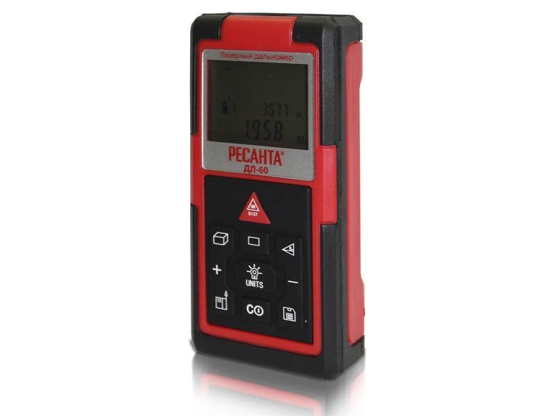 Дальномер Ресанта ДЛ-60 61/10/516 оснащен следующими функциями: измерение объема, измерение площади, вычисления по Пифагору. Он широко применяется при строительстве и ремонте, а также незаменим в труднодоступных местах, таких как колодцы и шахты. Автоматическое отключение лазера происходит через 20 секунд, а самого устройства - через 5 минут.
