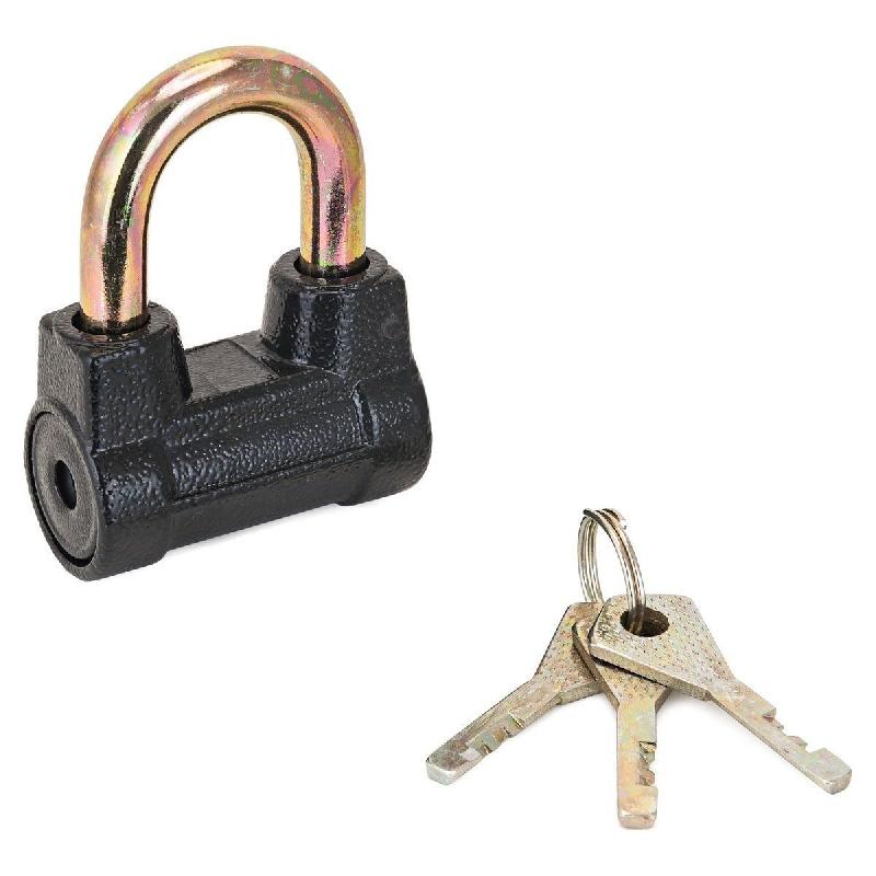 Замок навесной дисковый общего применения. Материал корпуса - алюминиевый сплав. Стальная дужка диаметром 9 мм; проем дужки - 31 мм по высоте и 26 мм по ширине. Габариты корпуса - 53х33 мм.Комплектуется 3 ключами. Ключевое отверстие расположено сбоку замка. .
