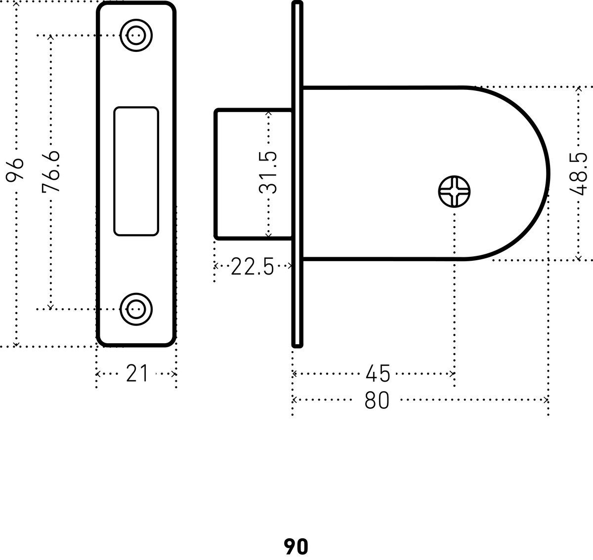 Замок врезной без ручки АЛЛЮР 90 крестовый ключ