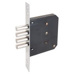 Замок врезной цилиндровый, под крестообразный ключ. Предназначен для установки в деревянные двери, металлические ящики, кабинки и пр. Корпус - стальной покрыт полимерной краской, засов из четырех стальных цилиндрических ригелей, диаметром 12мм. Удаление ключевого отверстия 50мм. 5 ключей. Ширина торцевой планки 23мм, гальваническое покрытие, цвет - хром.