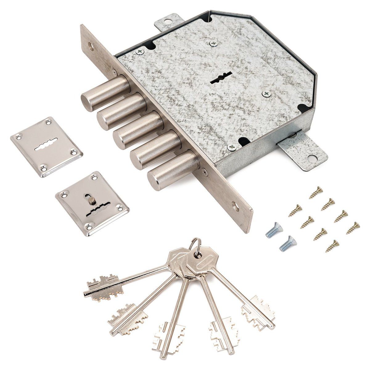 Замок врезной сувальдный с тягами для металлических дверей.