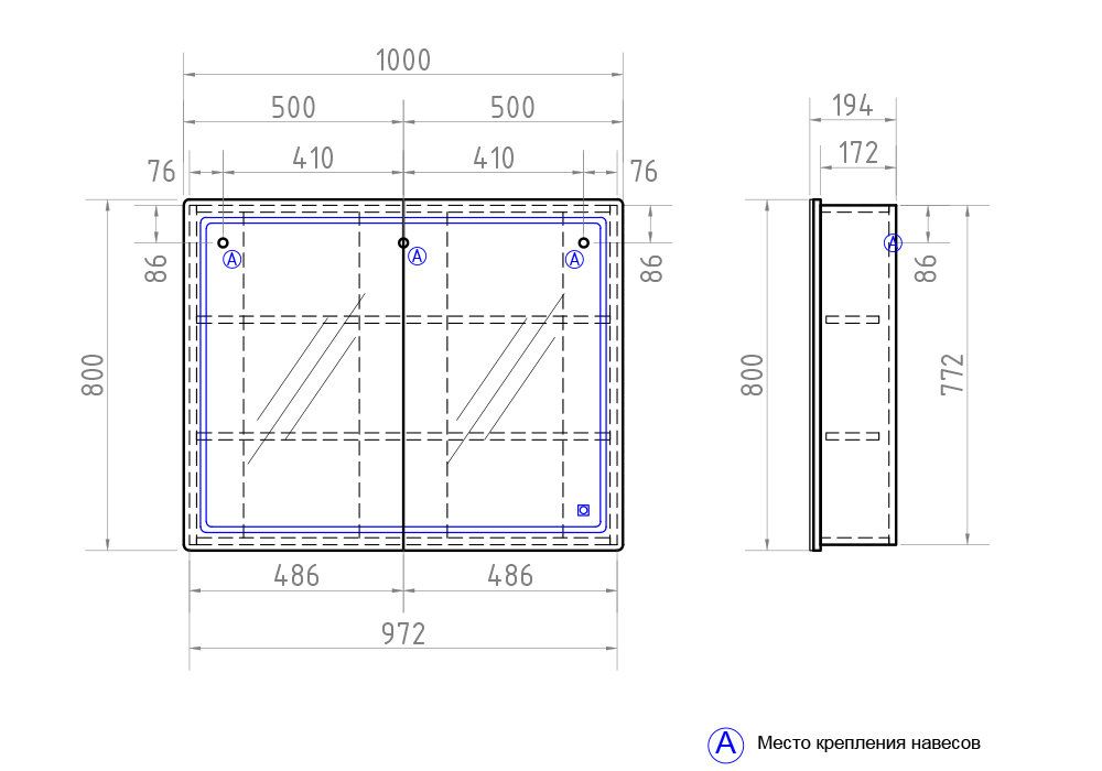 | Комплектация | зеркальный шкаф с подсветкой |