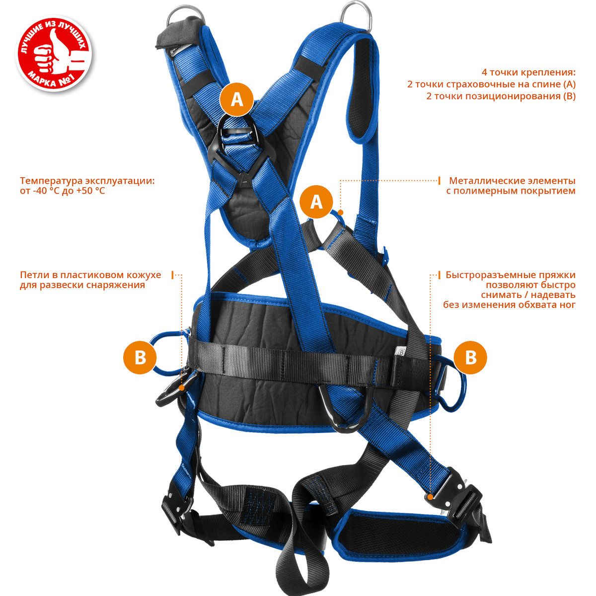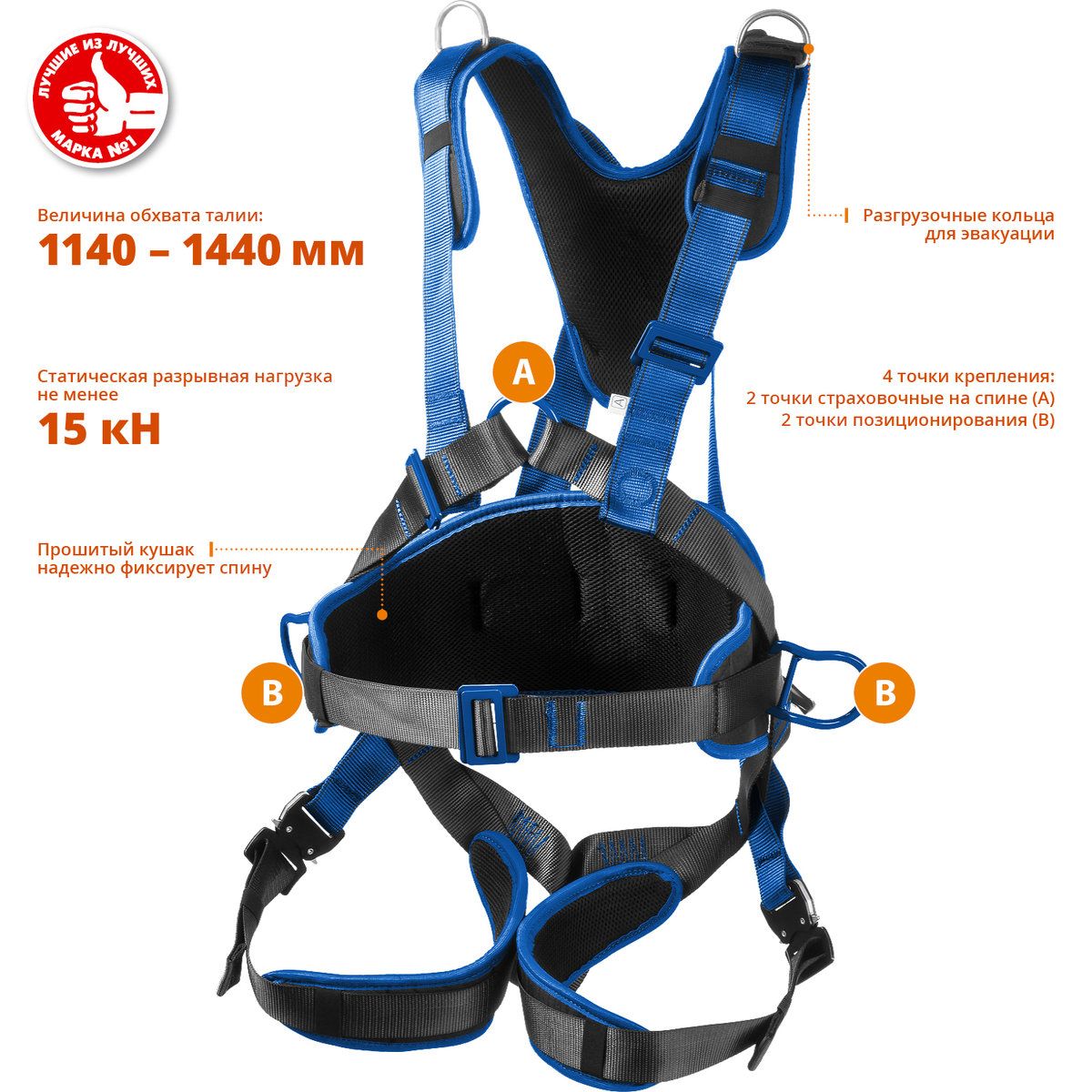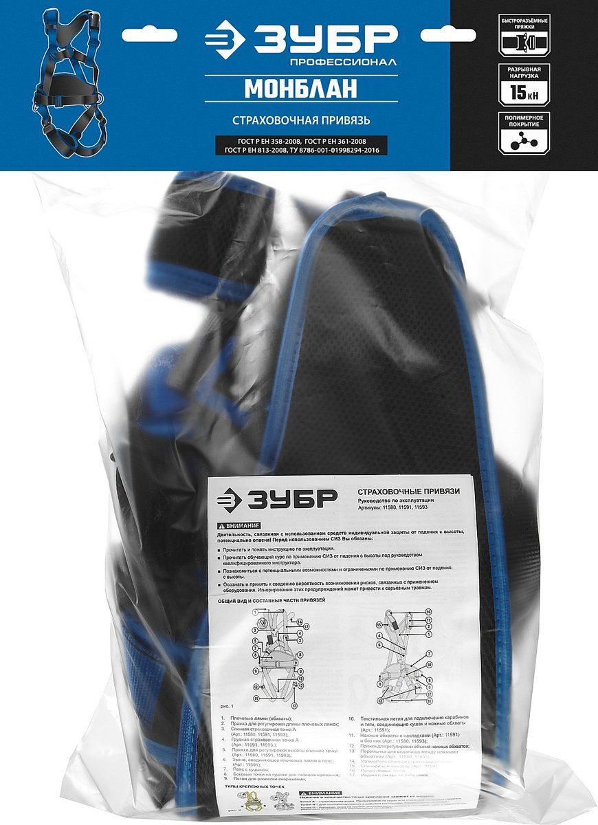 Страховочная привязь «ЗУБР» – надежное средство защиты от падения с высоты. Она служит элементом страховочной системы для охвата тела с целью предотвращения падения.